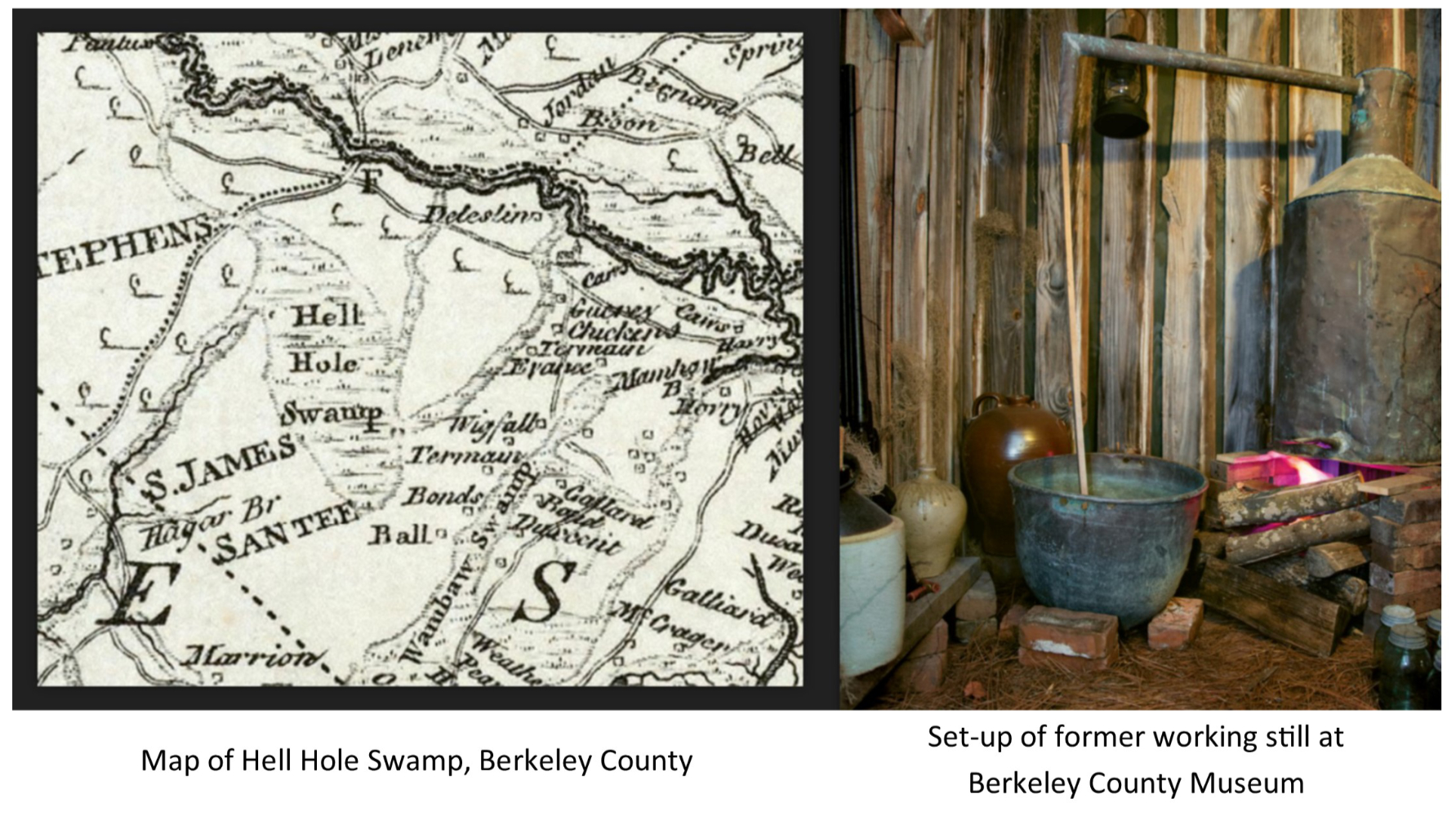 The Charleston Courier complained that Prohibition ruined Charleston’s tastes for fine liquor. Because they could no longer obtain brandy and Madeira, they guzzled “Hell Hole (Swamp) corn likker”.