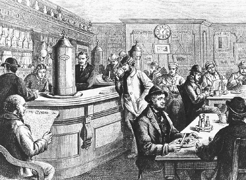 In the late 18th century, due to the arrival of French refugees from Santo Domingo, taverns were being challenged in popularity by French coffee houses. However, most people believed coffee did far greater harm to a person than did rum, whisky, brandy and beer. Some taverns even took out newspaper advertisements extolling the virtues of liquor and the ill effects of coffee. The coffee house merchants fought back and published pamphlets of the benefits of the genteel practice of drinking coffee.