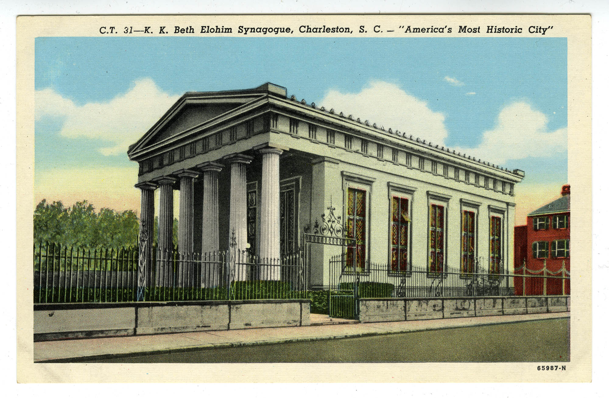 Kahal Kadosh Beth Elohim, (Holy Congregation House of God) was organized in 1749 making it the fourth oldest Jewish congregation in the continental United States (after New York, Newport and Savannah). Prayers were initially recited in private quarters and in 1775 an improvised synagogue adjacent to the present-day grounds was constructed.In 1792 America’s “largest and most impressive” synagogue was constructed which was destroyed in the great Charleston fire of 1838 and replaced in 1840 on the same Hasell Street site by the Greek Revival structure in use today.