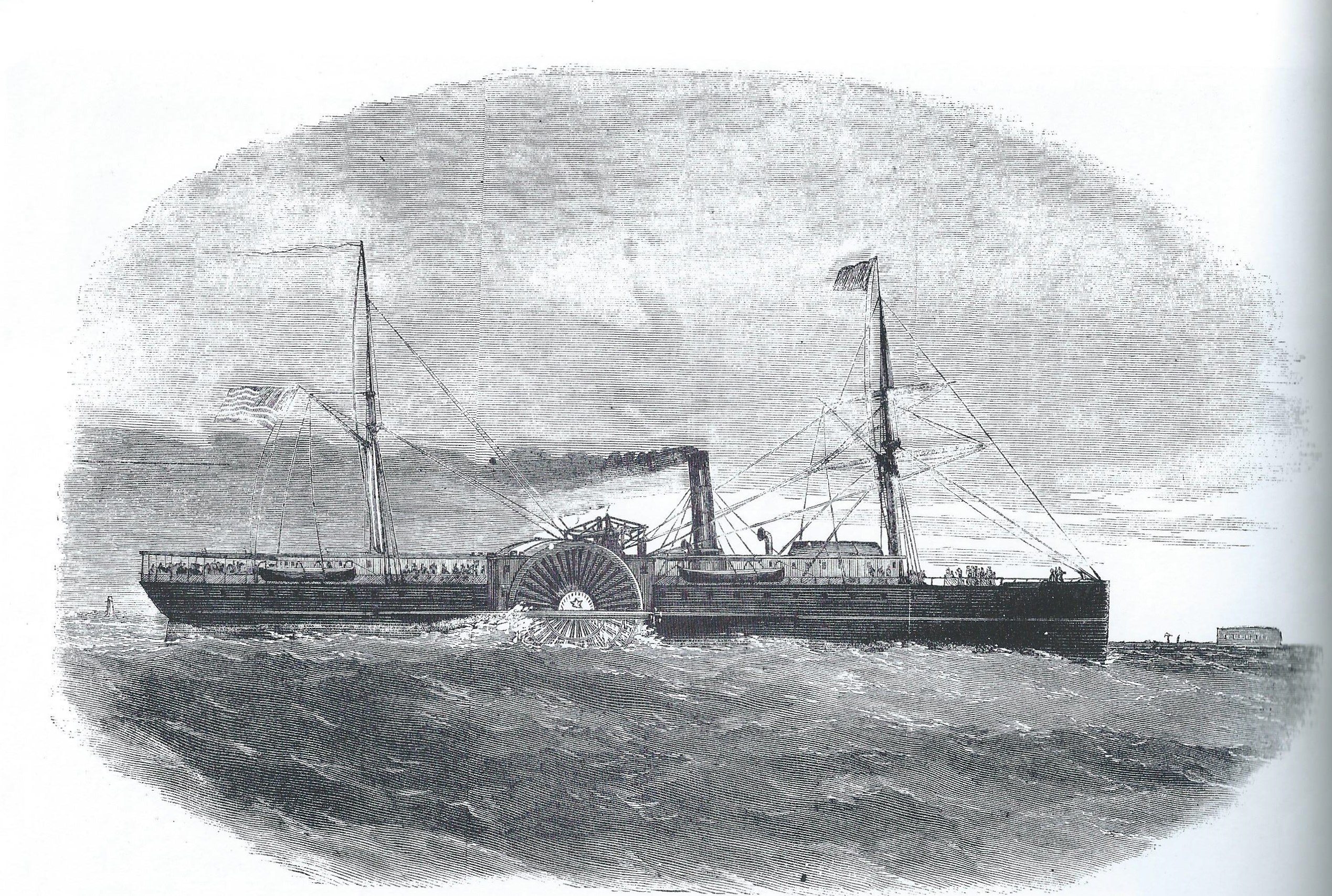 The Union merchant ship, Star of the West, was fired upon as it tried to deliver supplies to Fort Sumter in Charleston Harbor. The Star, built by Cornelius Vanderbilt, was a 1,172 ton, two-deck steamship, a length of 228.3 feet (69.6 m) and a beam of 32.7 feet (10.0 m) and with wooden hullside paddle wheels and two masts.