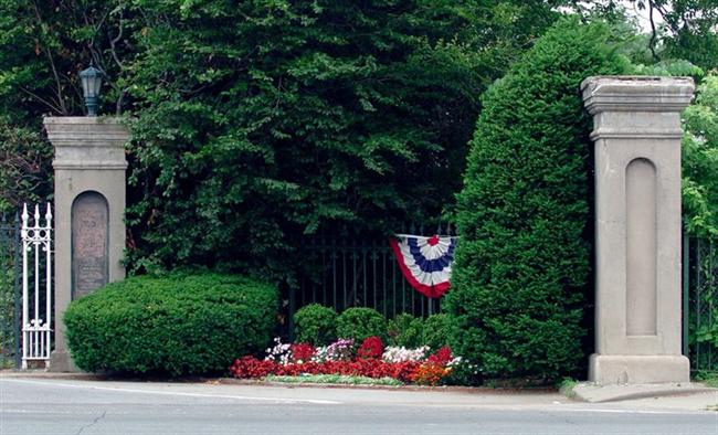 Today the brick pillars are located at the automobile entrance of the Belmont Park clubhouse in New York. The bronze plaque on the left pillar reads: