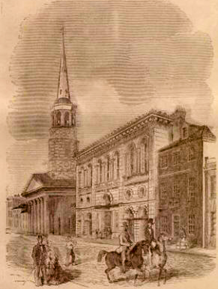 The new church was opulent, costing $60,000. It featured a round auditorium with a copper roof, a steeple sixty feet high and could seat up to 2000 people. A portico of six columns stood over the sidewalk. The entire church was lit by candles, which took the sexton more than two hours to light and extinguish.