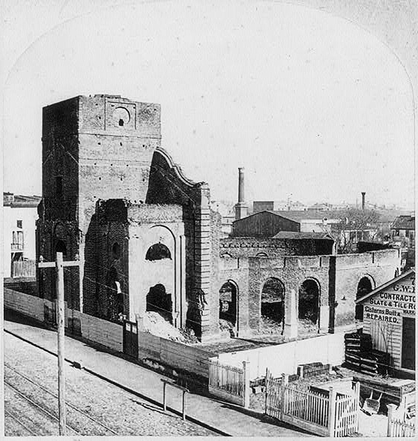 Ruins of the Circular Congregational Church, Charleston, circa 1880s. Photograph shows the damage from the 1861 fire that ravaged the city. Courtesy Library of Congress.